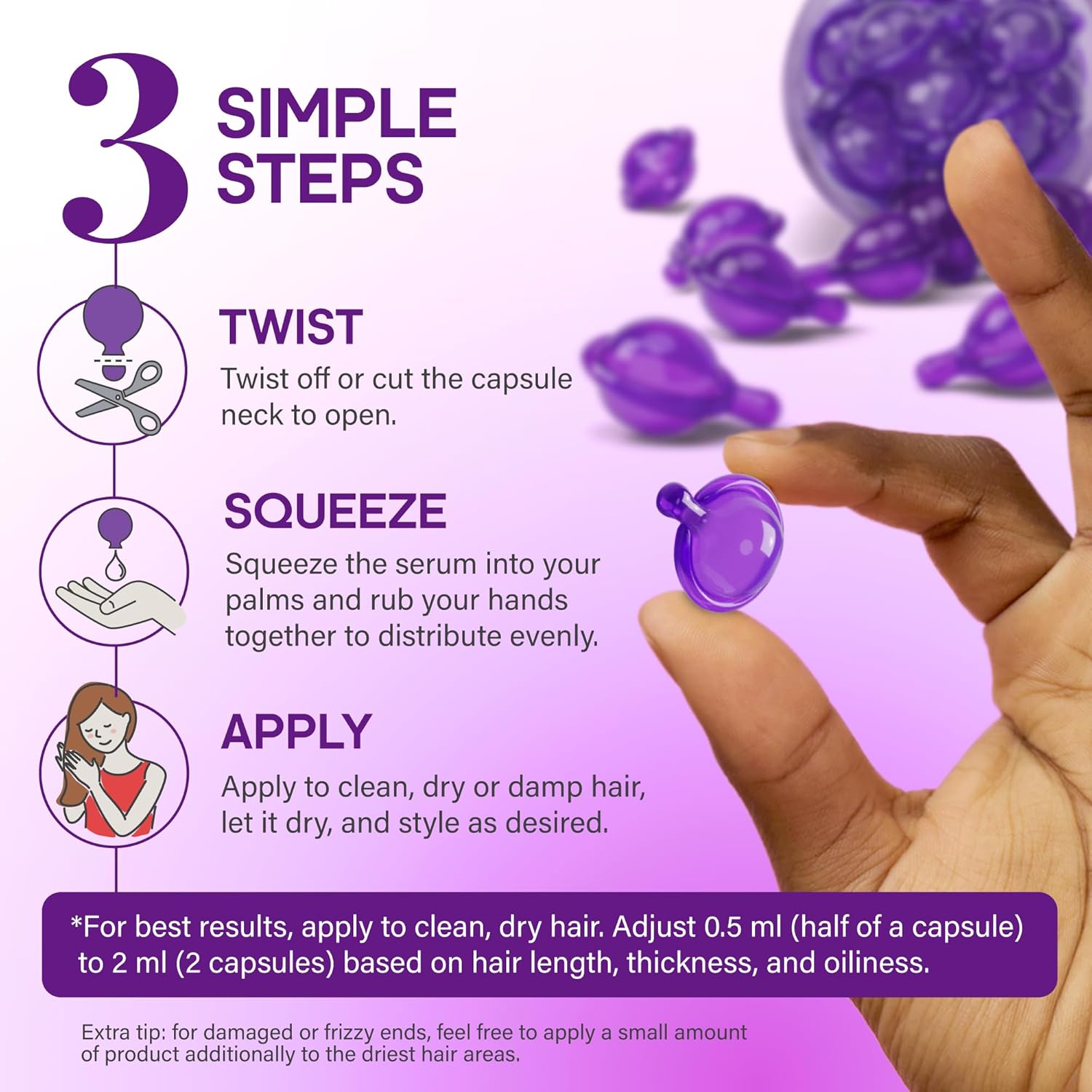 - 💜 Nutrient‑Rich & Safe Formula — packed with Vitamins A, E & B5, these hair oil capsules help shield against heat & environmental damage. Free from parabens, sulfates & cruelty‑free for guilt‑free beauty.