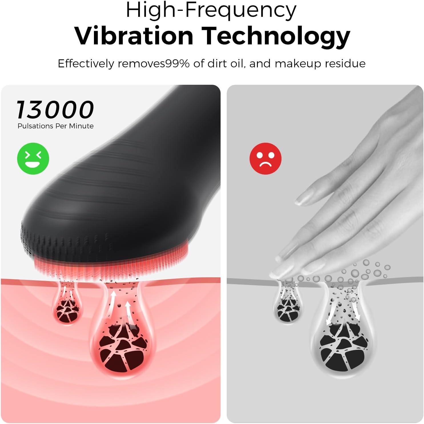 - Ultra-Soft Liquid Silicone & Micro-Vibration Magic: Ditch harsh scrubs and abrasive rotations! Our facial cleansing brush is crafted with revolutionary liquid silicone, proven 60% softer than traditional bristles. High-frequency micro-vibrations gently—yet powerfully—lift away dirt,excess oil, and dead skin cells without pulling or tugging. Experience a deep, barrier-respecting clean that leaves skin smooth,never stripped or irritated. Perfect for sensitive,acne-prone,or delicate skin types.