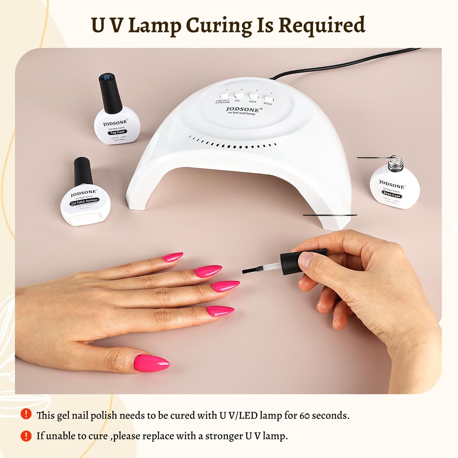 - Reminder & Note: This product requires curing with U V lamp. Please follow the product instructions and steps for optimal results. If you have any questions, feel free to contact us!