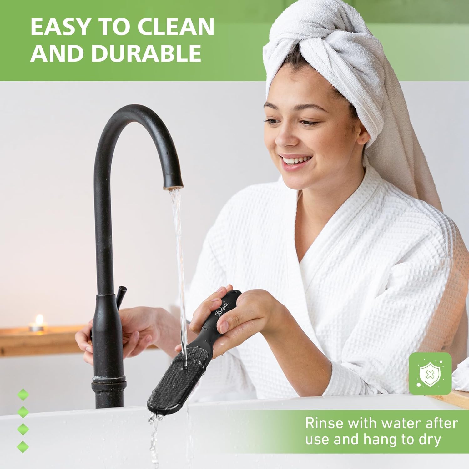 - Gentle Yet Powerful Pedicure Tool for Feet : Engineered with durable, hygienic nano glass, this foot scrubber dead skin remover works safely on sensitive skin without irritation. Its ergonomic handle ensures precision control, making it easy to target problem areas like heels and balls of feet—no more sore hands or uneven results! You can get a salon pedicure results on your soles.
