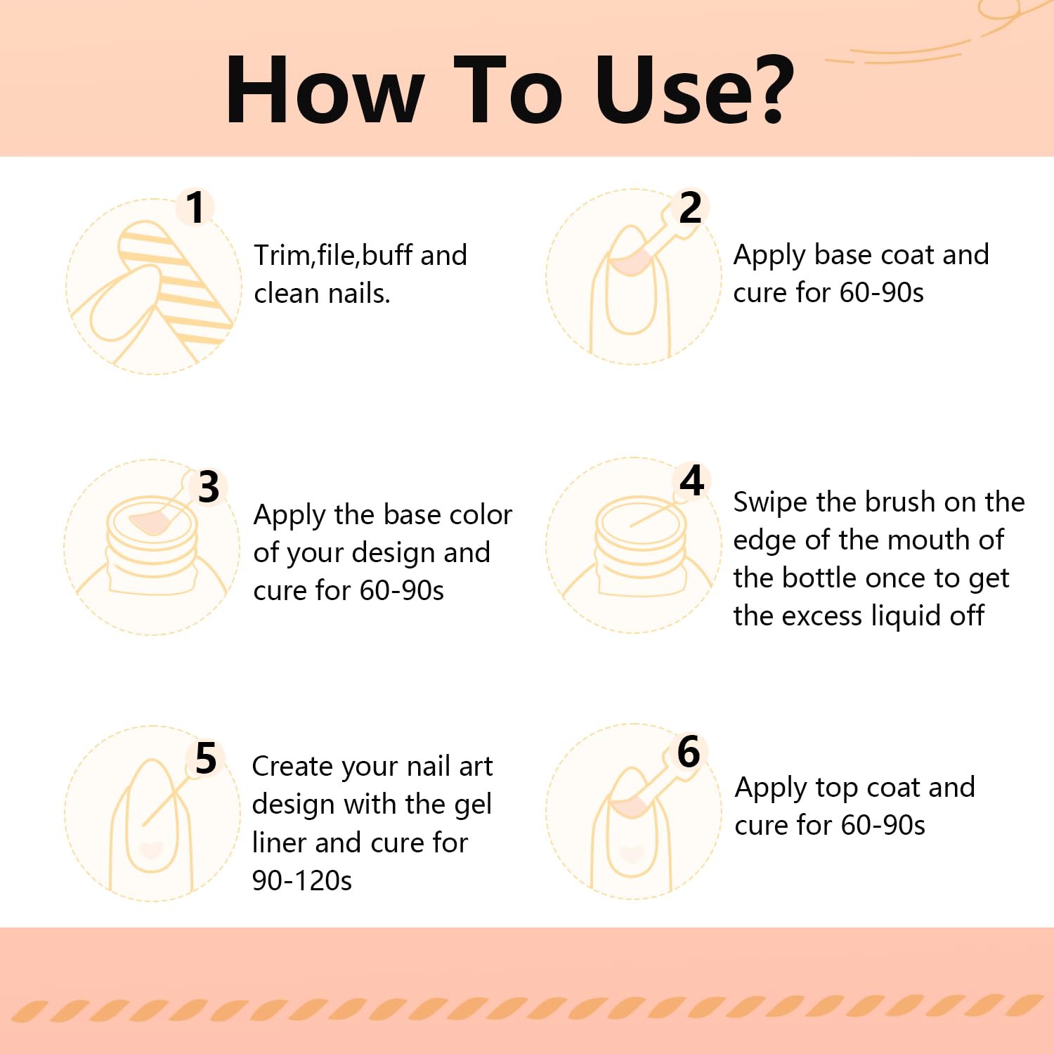 - Premium Quality Nail Art Line Gel:The set contains 10 vibrant and dreamy gel pigments, made of high quality and safe ingredients with mild scent to create a personalized nail art experience.