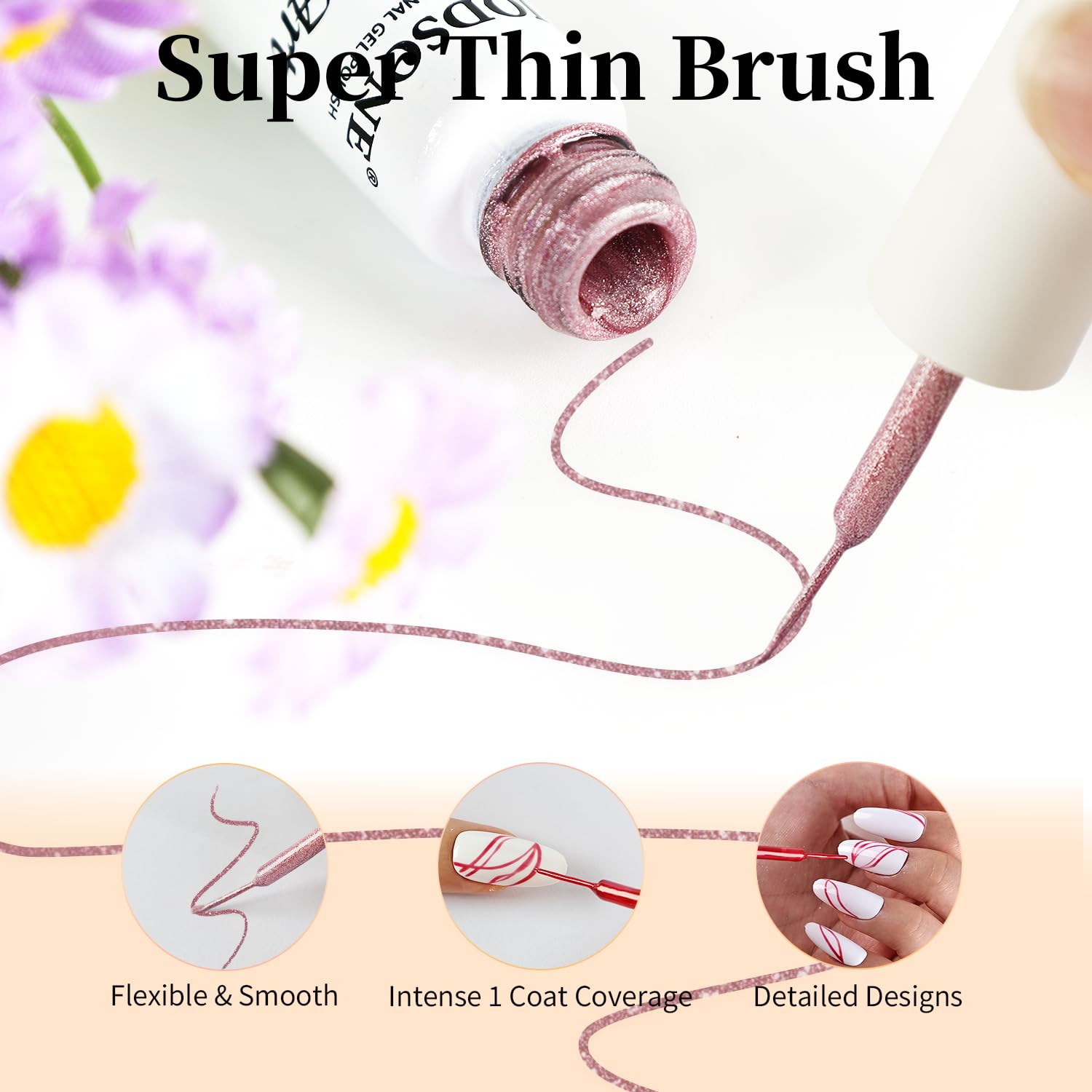 - You'll Received:10Pcs Red Black Pink Glitter Nail Art Gel Liner Paint Set.With the built-in thin brush, you don't have to get out your set of brushes for adding details and lines. of nail manicure decoration, especially for nail art manicures. It not only creates a gorgeous momentum for your nails.