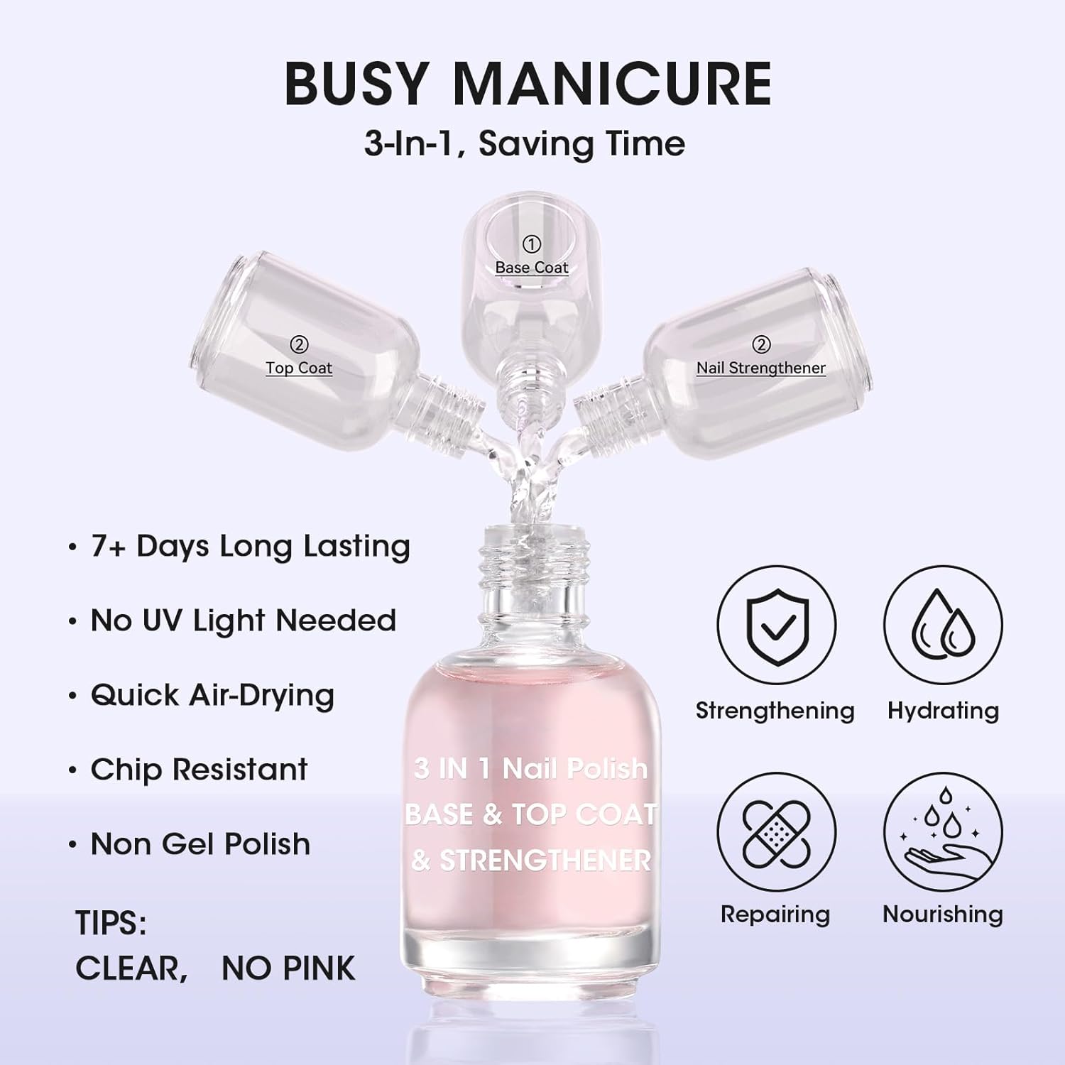 - 3-in-1 Formula: Base coat + top coat + nail strengthener in one bottle - saves time and money. Quick Air-Dry β dries fast