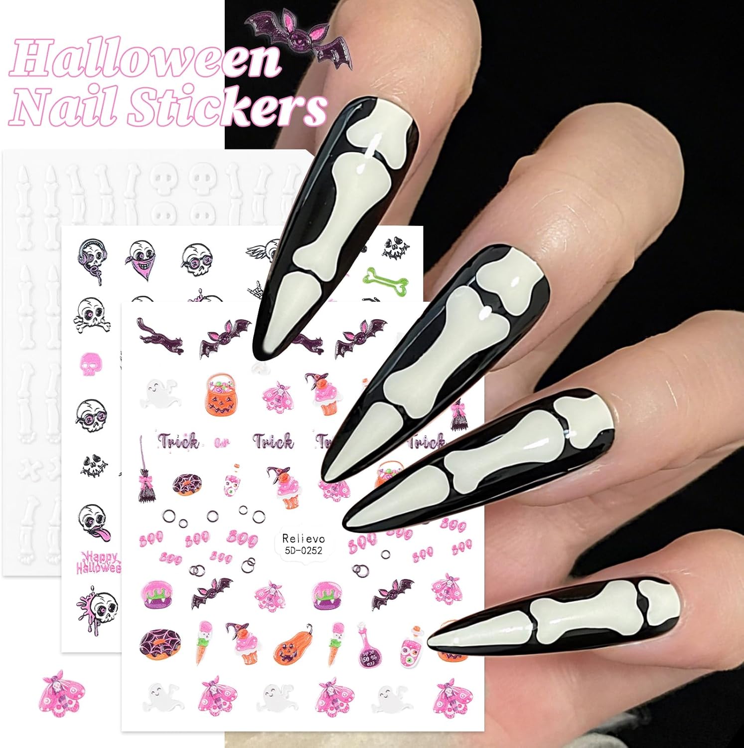 - 🎃 Easy-to-Use Halloween nail supplies: Thanks to the self-adhesive backing, you don’t need any glue. Just tear off your favorite pattern, stick 5D stickers on your nails, and press gently for a few seconds. That’s all it takes to get unique, beautiful, professional-looking nail art.