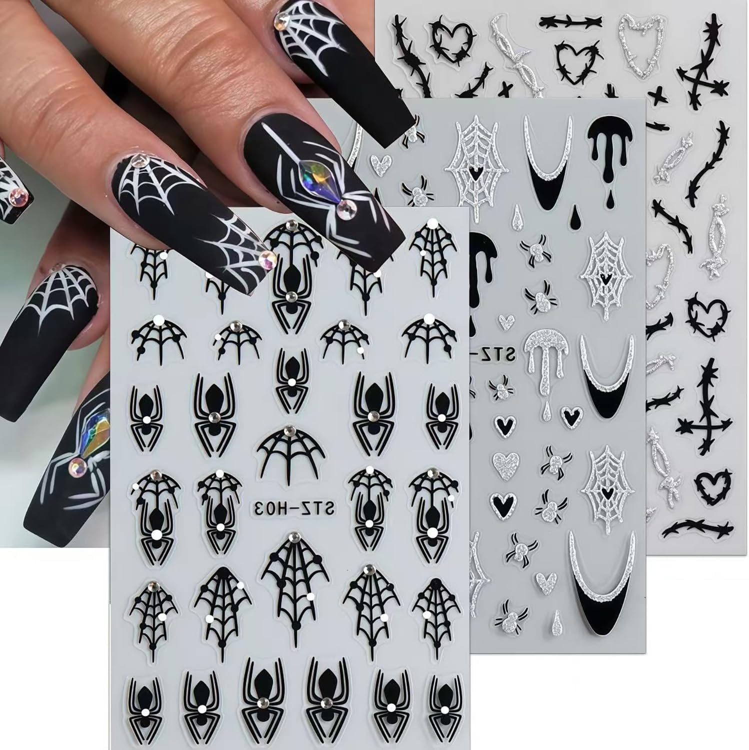 - Holiday Manicure DIY: Fashionable diamonds spider nail art sticker design, each sticker has a different style pattern, satisfying your rich imagination of nail DIY, and easily creating your own exclusive nail art