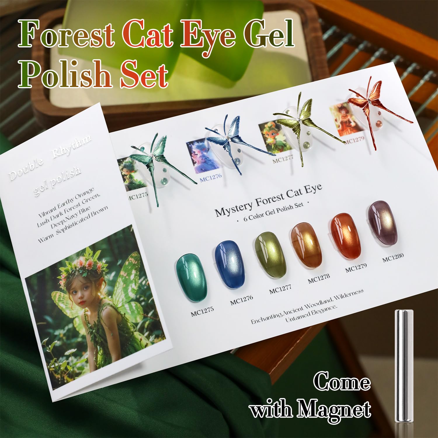 Double Rhythm Cat Eye Gel Nail Polish Set of 6 Same Color Same Bottle 0.5 Oz Shimmer Glitter with Magnet Holographic Reflective Magnetic UV Nail Polish Kit at Home (Green Navy Blue Black-T6-61)
