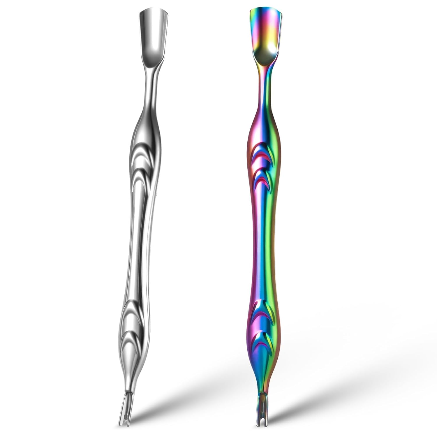 2 Pcs Cuticle Pushers with Fork, 2-in-1 Cuticle Trimmer Professional Nail Scraper Cuticle Remover Stainless Steel Nail Care Tool Dead Skin Cutter for Manicures, Pedicures