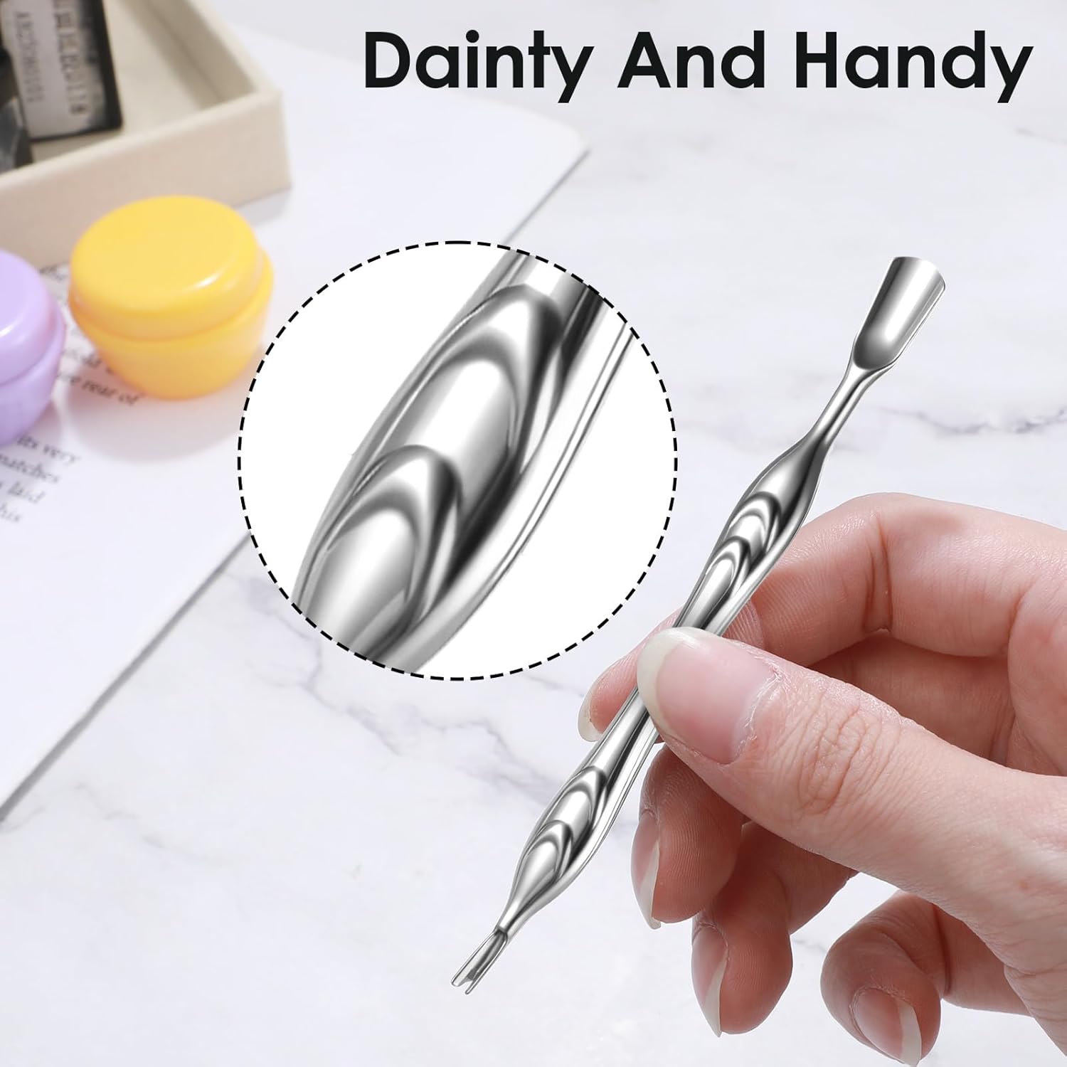 - Portable: The metal cuticle pusher's compact size makes it easy to carry. Whether for use at home or on the go, the cuticle fork easily fits in a makeup bag or handbag, allowing you to enjoy professional nail care anytime, anywhere.