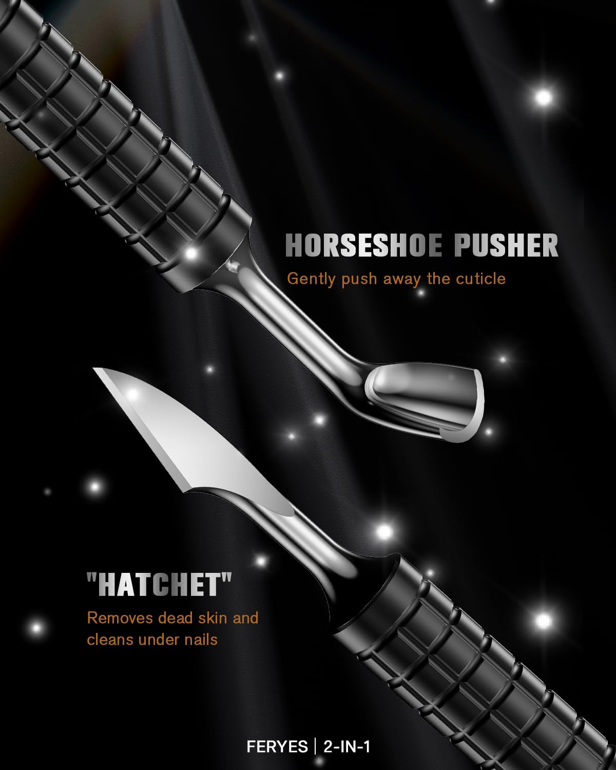 - 【Dual Heads for Surgical-Grade Precision】Engineered with a innovative Horseshoe Edge pusher and chisel edge – Achieve salon-level results by gently pushing cuticles without tearing, while the 1.5mm Chisel Edge effortlessly scrapes off gel polish, calluses, and dead skin. No more switching between 2 tools!