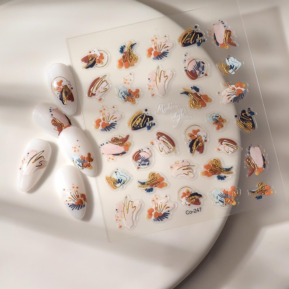 Fall Nail Art Stickers 3D Embossed Oil Painting Nail Stickers, Self-Adhesive Durable Nail Art Decals for Women Girls, Nail Wraps Decoration Manicure for DIY Acrylic Nail Accessories