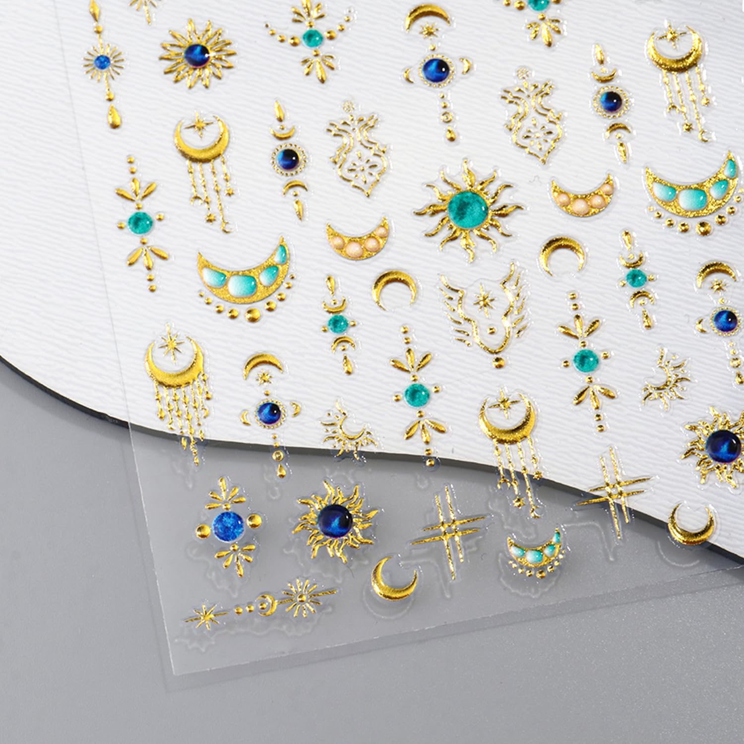 - Quantity: You will get 4 sheets of Bohemia nail art stickers, including star and moon pattern designs, not easy to fall off or fade, can easily create a variety of themed nail art